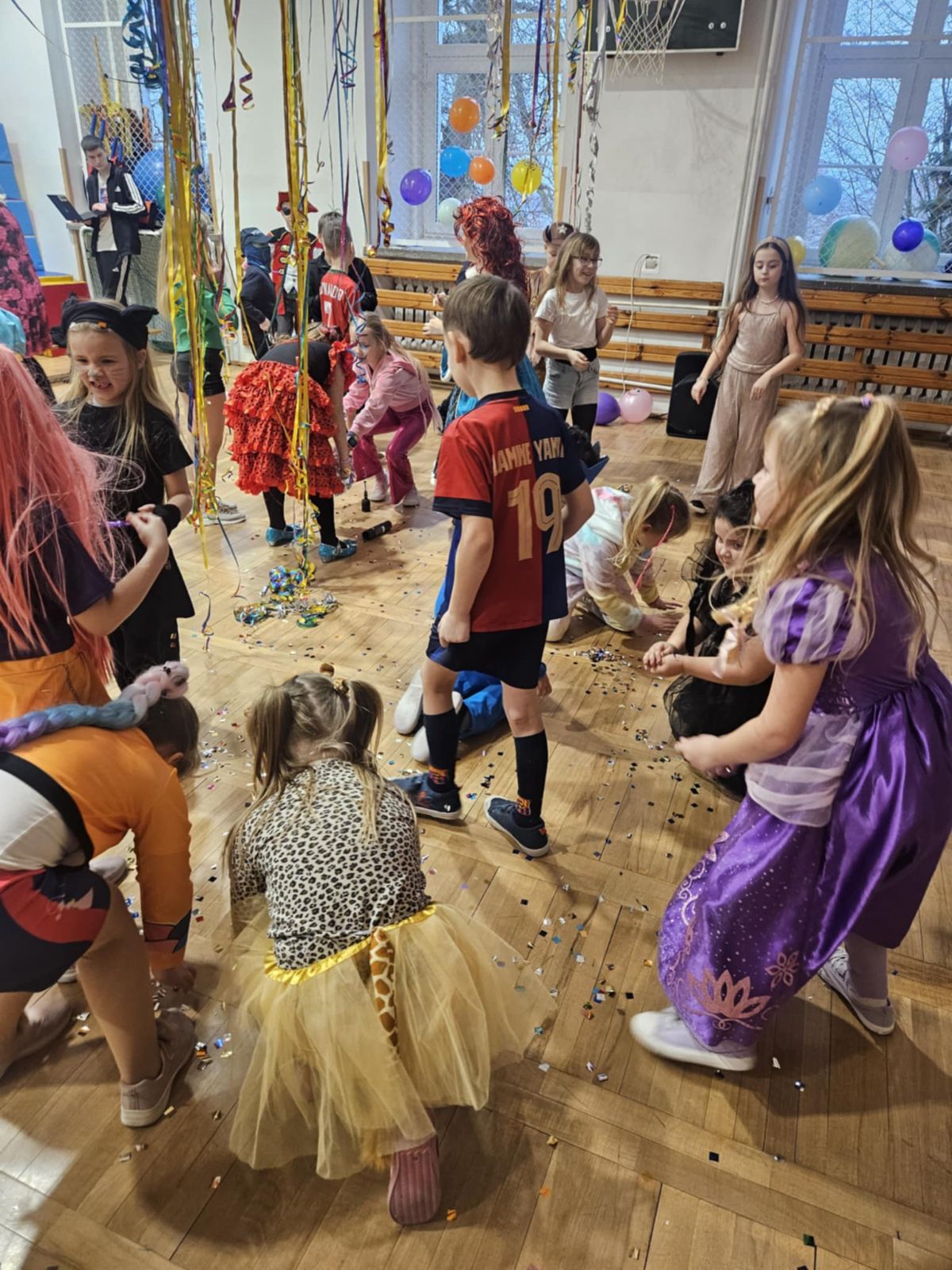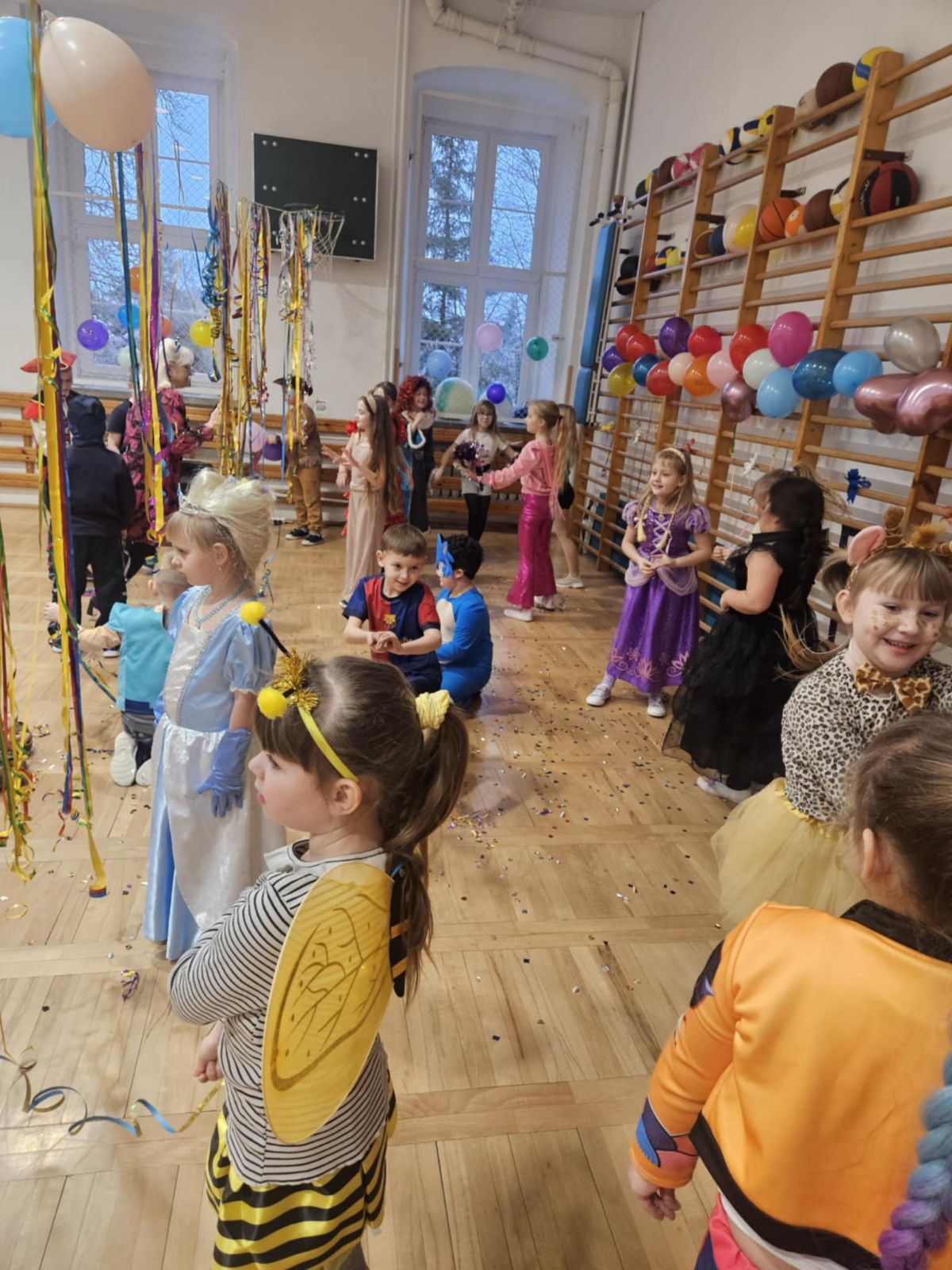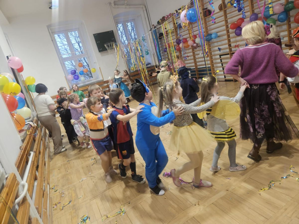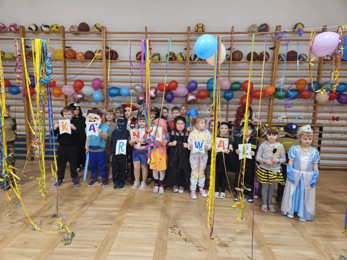 29.01.2026r. w naszej szkole odbył się długo wyczekiwany Bal Karnawałowy dla najmłodszych. Tego dnia sala gimnastyczna zamieniła się w kolorową, pełną radości salę taneczną, a dzieci przyszły przebrane za ulubione postacie z bajek, superbohaterów, księżniczki, zwierzątka i wiele innych fantastycznych bohaterów. Podczas zabaw nie zabrakło wspólnych tańców oraz zabaw ruchowych, które dostarczyły wszystkim mnóstwo uśmiechu i pozytywnej energii. Wesoła muzyka i świetna atmosfera sprawiły, że parkiet ani przez chwilę nie był pusty.