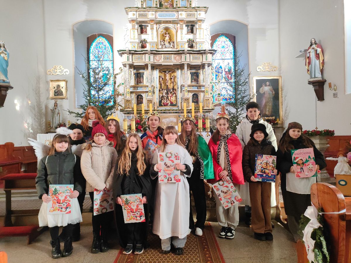 Pan sołtys Józef Mroziak wręczył wszystkim dzieciom słodkie niespodzianki, za co serdecznie dziękujemy. Podziękowania kierujemy również do rodziców za pomoc w przygotowaniu strojów do przedstawienia i obecność dzieci w kościele.