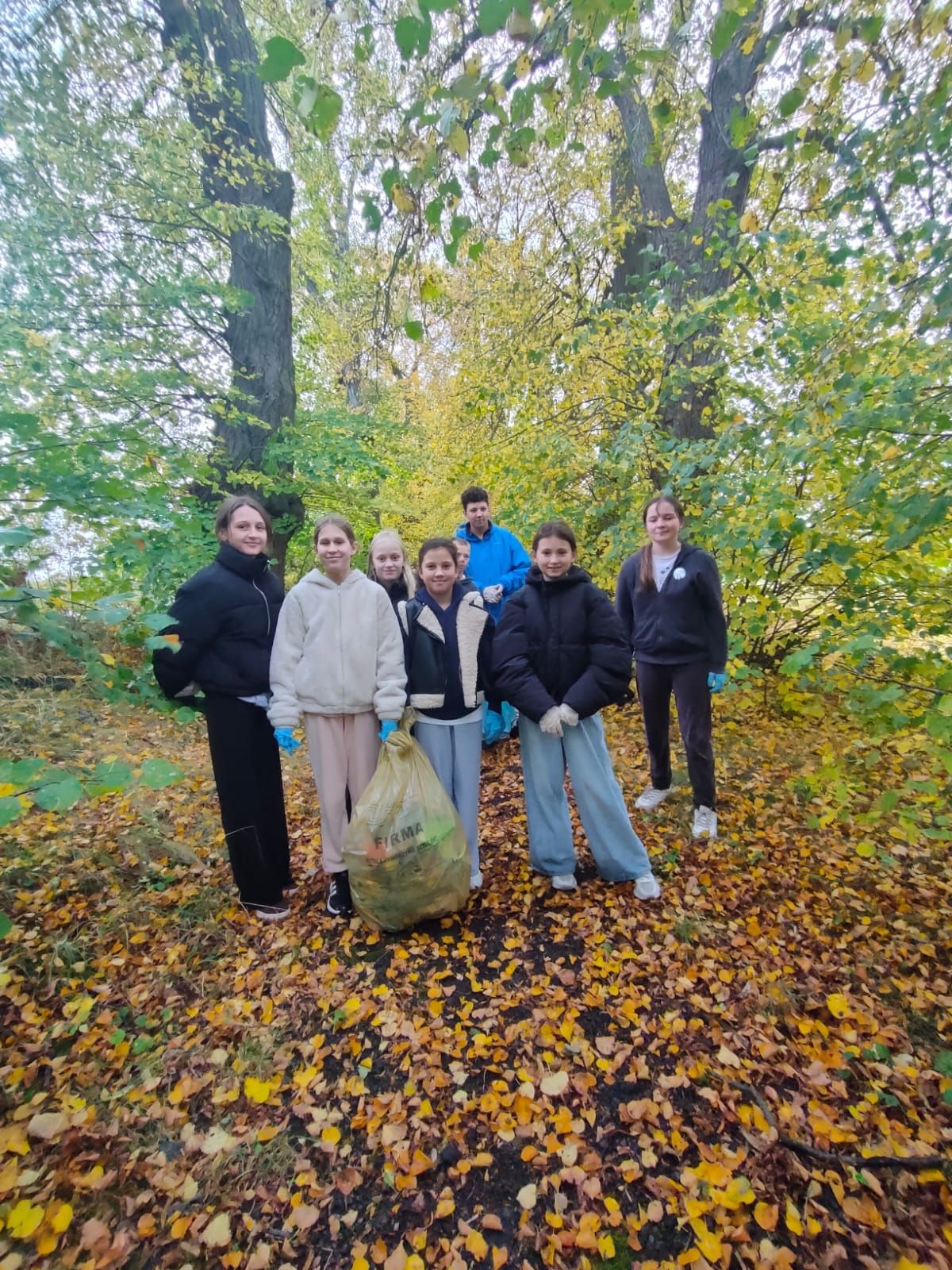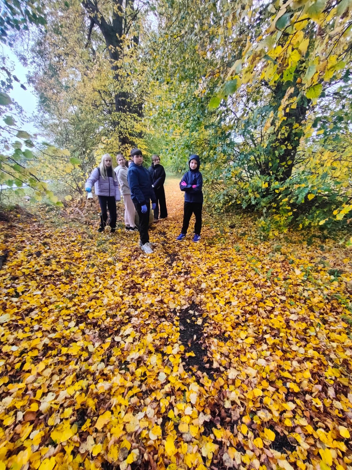 Sprzątaliśmy, segregując znalezione śmieci, teren parku wiejskiego przylegający do naszej szkoły. Pomimo jesiennej pogody nikogo z nas nie trzeba było zachęcać do „sprzątania” i zapełniliśmy kilka worków odpadami.