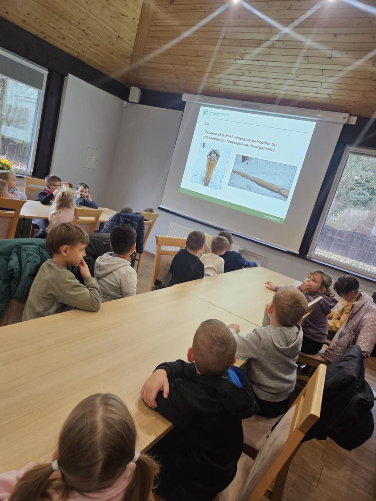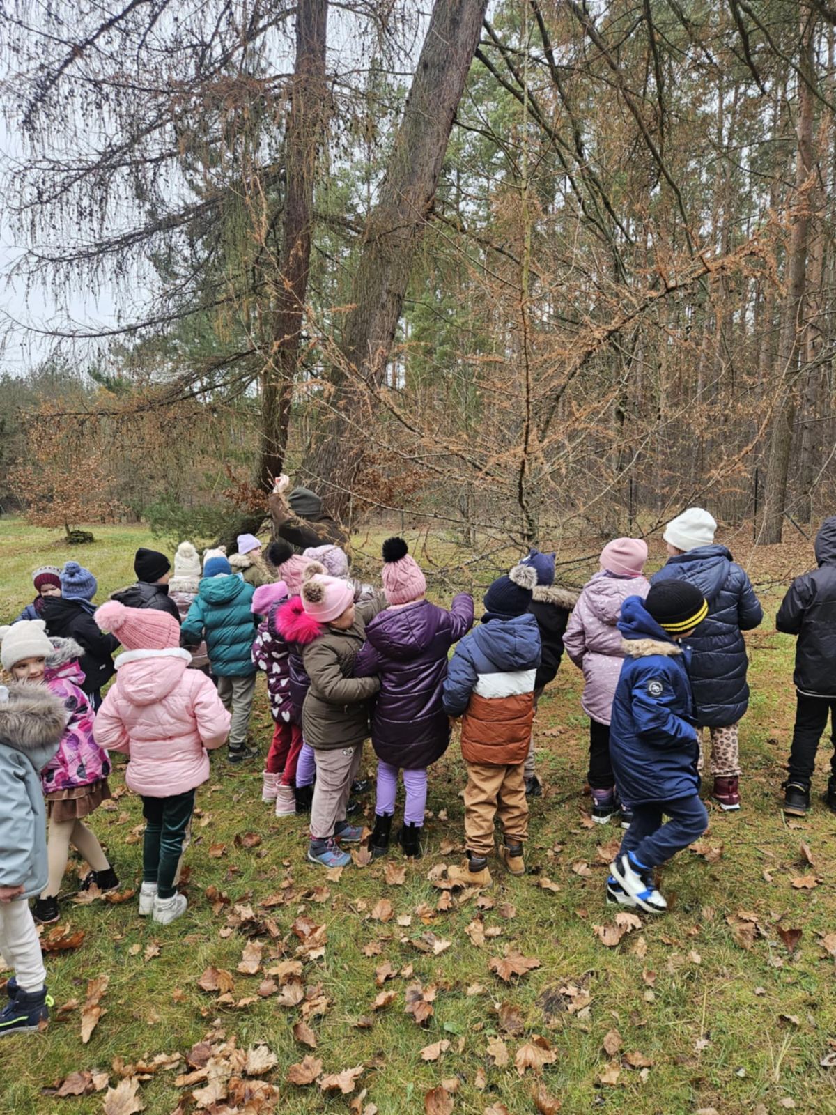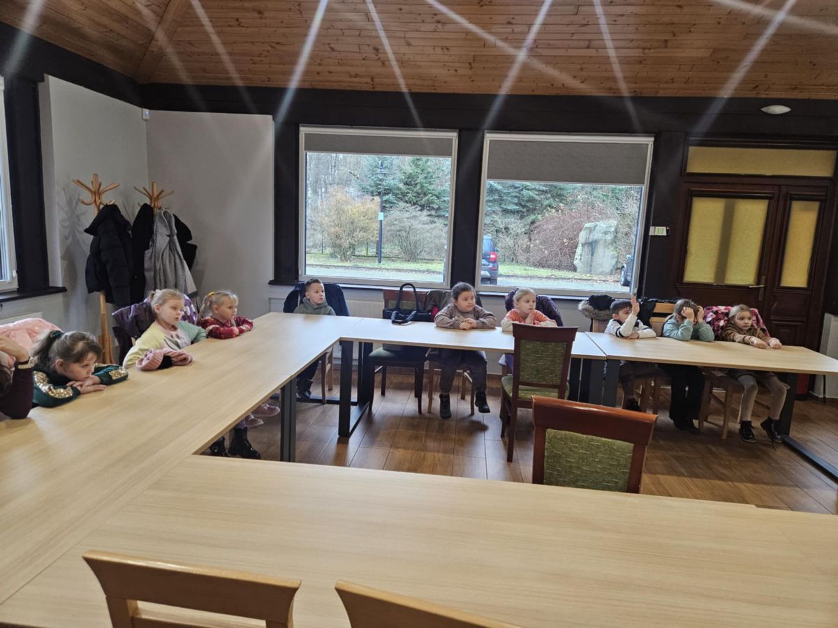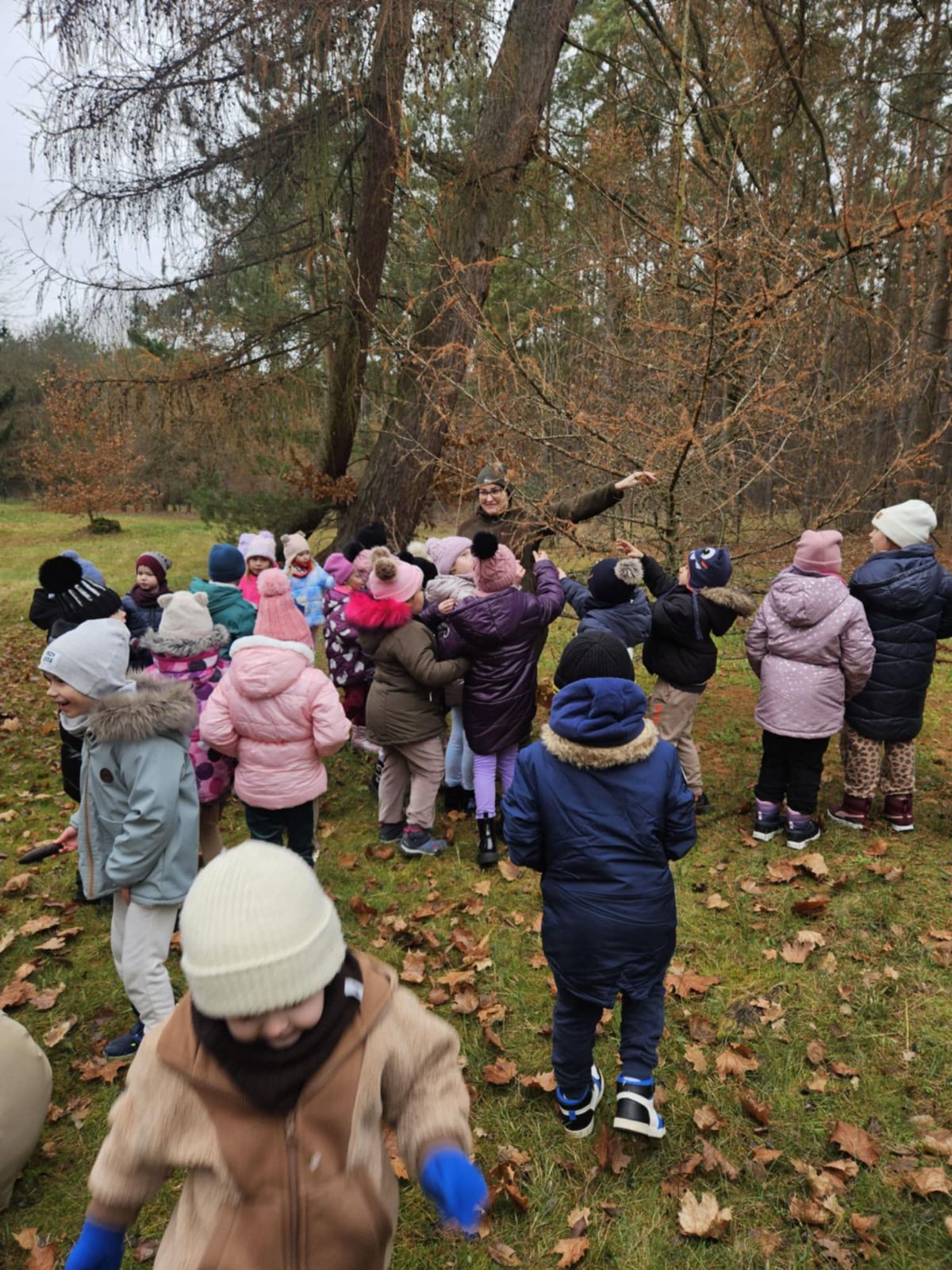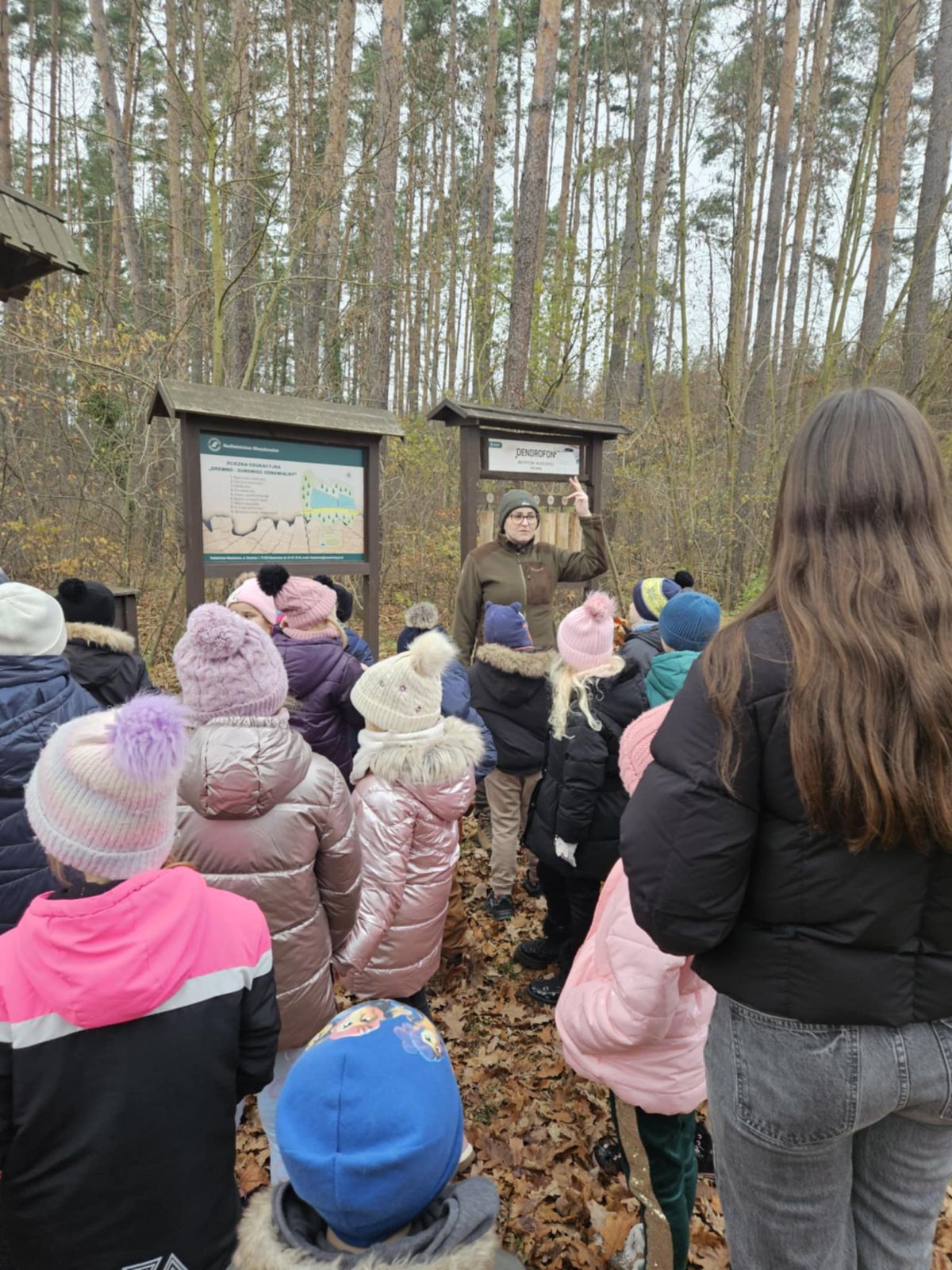 Dzieci z oddziału przedszkolnego oraz pierwszej klasy wybrały się autokarem na spotkanie z panią leśnik do Mieszkowic. W Nadleśnictwie czekało na dzieci wiele niespodzianek. Wybrały się na spacer do ogrodzonego lasu, tam poznały i podziwiały okazy drzew, a także owoce tych drzew i jesienne liście.