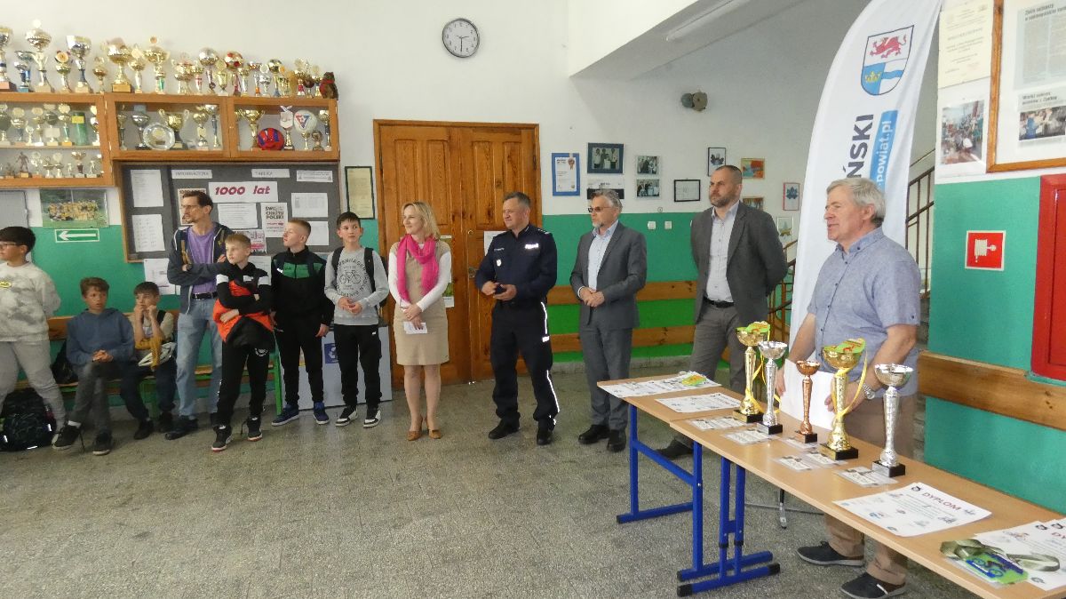 W dniu 29 kwietnia br. w naszej szkole odbyły się powiatowe eliminacje Turnieju BwRD. Rywalizowały drużyny z 8 szkół z kilku gmin powiatu gryfińskiego. Gminę Mieszkowice reprezentował zespół z Zielina. Turniej polega na przeprowadzeniu pięciu konkurencji sprawdzających wiedzę teoretyczną oraz umiejętności praktyczne: test znajomości obowiązujących przepisów ruchu drogowego, test skrzyżowań, rowerowy tor przeszkód, przejazd po miasteczku ruchu drogowego z zaliczaniem kolejnych punktów kontrolnych, a także egzamin z udzielania pierwszej pomocy przedmedycznej. Wszystkie konkurencje odbywają się pod nadzorem komisji utworzonej z funkcjonariuszy Policji z Wydziału Ruchu Drogowego Komendy Powiatowej w Gryfinie oraz w Chojnie, a także profesjonalnych ratowników z Gryfińskiego Stowarzyszenia Ratowniczego. W wyniku trwającej kilka godzin rywalizacji wyłoniono zwycięzców w kategorii klas V-VIII oraz w grupie młodszej z klas IV-V. W grupie starszej zwyciężył zespół SP Zielin w składzie: Karol Drużga, Hanna Czerniawska i Filip Rzepiński. Drugie miejsce zajęli uczniowie ze Szkoły Podstawowej nr 1 w Chojnie, a trzecie SP nr 3 w Gryfinie.