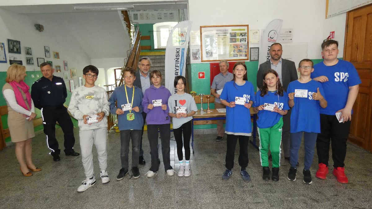 W grupie młodszej pierwsze miejsce zdobyli uczniowie ze szkoły w Krzywinie. Dwa zwycięskie zespoły będą reprezentować nasz powiat podczas eliminacji wojewódzkich, które odbędą się w dniach 6 i 7 maja 2025 r. w Pyrzycach. Także w klasyfikacji indywidualnej najlepsi okazali się uczniowie naszej szkoły. Pierwsze miejsce zajął Karol Drużga, drugie Hanna Czerniawska, a trzecie Filip Rzepiński.